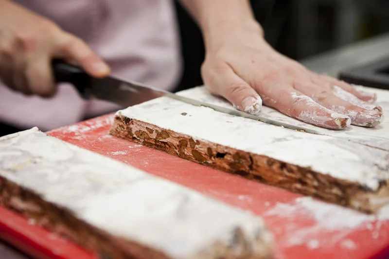 5. Using a sharp serrated knife cut as desired. Wrap in grease proof.